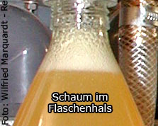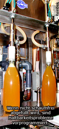 Auch Schaumaustrübungen fällen besser im Behälter aus, als in der Flasche. Wer aus der Rohrspirale den Saft direkt in Flaschen füllt, muss mit sichtbaren Schaumausfällungen im Flaschenkopf rechnen. Dieser Schaumbelag wird erst nach dem Abkühlen der Flasche sichtbar und ist dann angetrocknet.