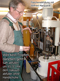 Ich plane im Moment die Einrichtung einer Mosterei und will mir das Pasteurisiergerät selbst bauen. Allerdings fehlt mir im Moment die Bezugsquelle für die Abfüllanlage. Auf dem Bild in der Bergedorfer Zeitung ist leider die Marke Ihrer Abfüllanlage nicht lesbar. Wollen Sie mir bitte die Marke mitteilen, um mit dem Produzenten Kontakt aufzunehmen?
