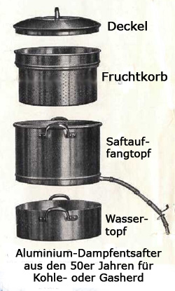 Im Anhang gebe ich Ihnen die „Gebrauchsanweisung“ unseres in den fünfziger Jahren beschafften Dampfentsafters zur Kenntnis. Dort wird für Äpfel eine Zuckerzugabe von 20 bis 50 Gramm je Kilo Frucht empfohlen. Bei Birnen sind es 20 Gramm.