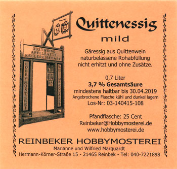 Deshalb empfehle ich auf mostpresse.de nur soviel Leim anzurühren, wie innerhalb eines Monats verbraucht wird. Dies Negativum betrifft nur den angerührten Flüssigleim. Das Trockenleimkonzentrat ist dagegen unbegrenzt haltbar, wenn es gegen feuchte Umgebungseinflüsse verschlossen ist. Die lange Lagerfähigkeit des Trockenleimes ist auch der Grund, weshalb ich mich endgültig für diese Leimsorte entschieden habe. So lange ich Trockenleim vorrätig habe, kann ich jederzeit etikettieren.