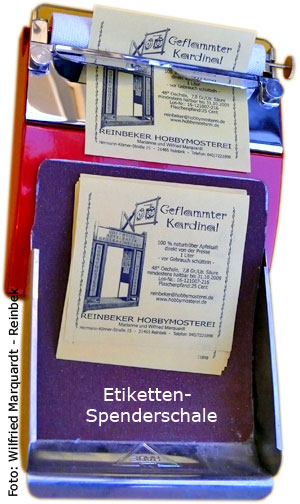 Wir hatten zu Beginn unseres Kellereiangebotes mal 2 Spenderschalen im Angebot, die aber keiner haben wollte. Wir auch nicht, weil die Vorlageschale absolut nichts bringt und hierfür ungerechtfertigt teuer ist. Sie können sich genauso gut einen kleinen Stapel Etiketten am Handetikettierer anlegen. Deshalb haben wir die Schalen nicht mehr im Angebot und in unserer Bedienungsanleitung als Hilfsmittel auch nicht erwähnt.