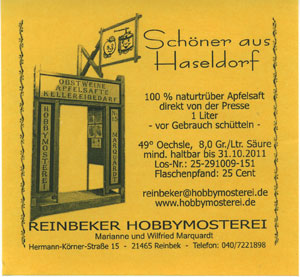 Im Anhang gebe ich Ihnen eines unserer Saftetiketten zur Kenntnis. Die Angaben über Grad Oechsle und Säure sind freiwillig von uns gewählt. Sie erleichtern bei der Kundenberatung, den geeigneten Saft nach persönlichen Empfindungen des Kunden anbieten zu können.