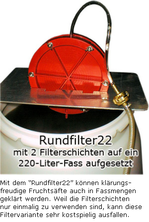 Preise und weitere Infos zum Rundfilter22 einschl. Bedienungsanleitung entnehmen Sie bitte http://www.mostpresse.de/rundfilter22.html .