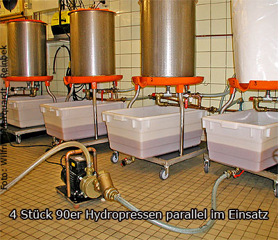 Der Pressvorgang bei Hydropressen ist mit 50 Minuten anzusetzen. Wenn Sie Zeitgewinn wollen, müssen Sie mehrere Hydropressen einsetzen oder gleich das 90-