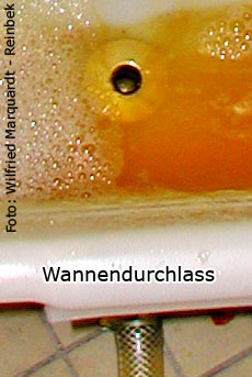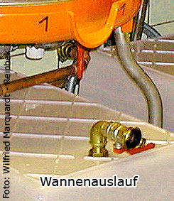 Wie haben Sie den Ablauf aus den Wannen realisiert? Von außen meine ich einen Kugelhahn (roter Griff) sowie eine Geka-