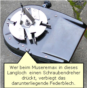 Diese von mir geübte Prozedur sollten Sie nicht wiederholen. Für den kleinen Geldbeutel und als Einstiegsmodell empfehle ich den „Musermax“ als Schneidemühle von der Firma MTD. Robuster und insgesamt wesentlich unempfindlicher ist die Schneidemühle von der Firma Speidel ausgelegt.