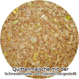 Für die Quitten möchte ich noch anmerken, dass die Schneidemühle die Frucht genauso fein schneidet, wie die Äpfel. Doch für die Hartfrucht ist die Schneidstruktur zu grob. Wie bereits mehrfach an anderer Stelle unter F&A-