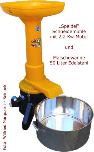 Mit dem Musermax von der Firma MTD als Schneidemühle kann Kernobst in gute Maischequalität verarbeitet werden. Bei Tausch der Messerscheibe gegen den mitgelieferten Kunststoffschlegel kann Steinobst gemaischt werden. Das Gerät ist mit rund 300,-