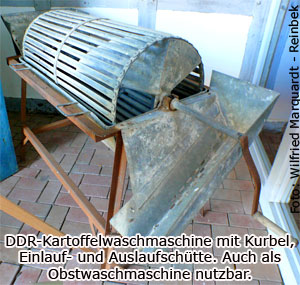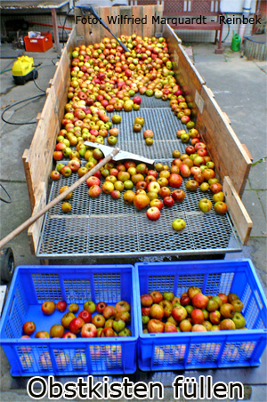 Der Haken mit der Waschkiste ist nur, dass das gewaschene Obst noch einmal für die Eingabe in die Obstmühle anzufassen ist, wofür zusätzlich die gleiche Zeit von 15 Min./100 Kg aufgewendet werden muss.
