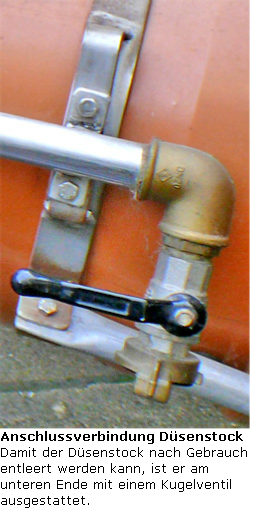 Damit der Düsenstock nach Gebrauch entleert werden kann, ist er am unteren Ende mit einem Kugelventil ausgestattet.