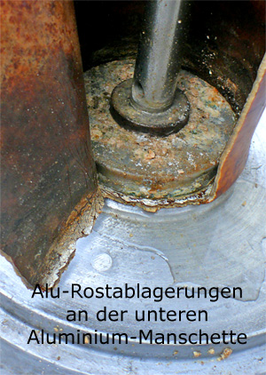 Beim Austausch der Membran ist darauf zu achten, dass die inneren wasserberührten Aluminiumteile von korrodierten Ablagerungen gereinigt werden.