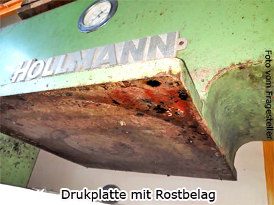 Nach den Fotos zu urteilen ist die Unterseite der Gegenplatte mit Rost und getrockneten Saftresten belegt.