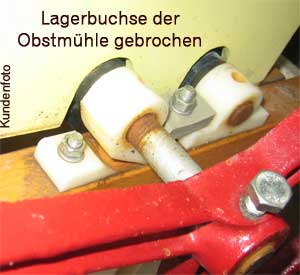 An meiner bei Ihnen erstandenen Obstmühle ist leider ein weißes Plastiklager gebrochen (siehe Foto), können Sie dafür ein Ersatzteil besorgen oder mir mitteilen, wo es so etwas geben könnte?