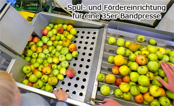 Das hört sich theoretisch gut an, funktioniert in der Praxis aber nur selten, weil z.B. die Obstaufgabe aus dem Waschwasser doch nicht auf die Leistung der Obstmühle mit Weiterleitung der Maische an die Bandpresse abgestimmt ist. Hier erfolgt vom Hersteller oder Lieferanten zwar eine persönliche Einweisung, die jedoch in der Komplexität vom Anlagenbetreiber kaum aufgenommen werden kann und im hektischen Betriebsablauf auch unbeachtet bleibt. Besonders dann, wenn der Anlagenbetreiber diesen Arbeitsschritt dem Kunden, der das Obst anliefert, als gern gesehene Hilfe überlässt.Je schmaler die Bandbreite, um so weniger Obst ist der Anlage zuzuführen.