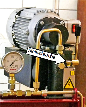 Bei modernen Hydraulikpumpen kann der Enddruck an einer Stellschraube stufenlos geregelt werden.