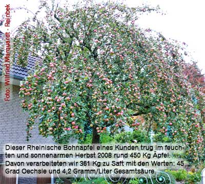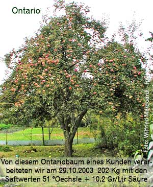 1. Bei Ihrer Suche nach Sorten, sollten Sie darauf achten, dass die Früchte in einer verkürzten Vegetationszeit am Baum ausreifen müssen, weil nur genussreifes Obst als Saft tauglich ist. Pflückreifes Obst, wie es die Obstbauern einlagern, ist unreif und der daraus gewonnene Saft ist minderwertig. Siehe hierüber auch meine Ausführungen auf http://www.obstpresse.de/Sortenwahl.html#Genussreife .