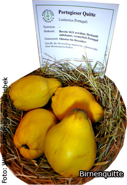 Die Birnenquitten lagen je nach herbstlicher Witterung zwischen 46 bis 54 Grad Oechsle und der Säurewert zwischen 8 bis 14 Gramm/Liter. Erntezeitpunkt für die Birnenquitte hier im Norden war in der ersten bis zweiten Oktoberwoche.