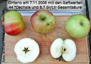 Beim Ontario ergibt sich eine Ausnahme, wenn die Äpfel genussreif und frisch verarbeitet werden. Für Genießer trockener Weine kann der Ontariosaft auf Festlichkeiten/Besuchen als Weinersatz gereicht werden, wenn wegen Alkoholverzicht der Weingenuss reduziert werden soll.