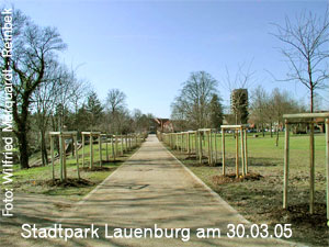 Gleiches gilt mit der Stadt Lauenburg, die über eine alte Streuobstfläche verfügt und etwa im Jahre 2005 Wegeränder im Park mit jungen Hochstämmen ergänzte, siehe beigefügtes Foto. Mit einem Ansprechpartner kann ich hier jedoch nicht aufwarten.