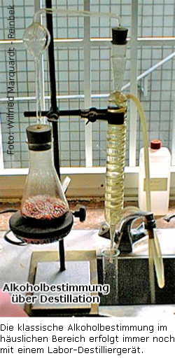 Wenn Sie den Alkoholgehalt für verkäufliche Produkte feststellen wollen, muss dies nach den gesetzlichen Vorgaben mit 0,3 %Vol Toleranz nach oben oder unten erfolgen. Für die Grundausstattung der Messeinrichtung bei Dampfdestillation können schon mal 500 Euro investiert werden. Für Produkte des Eigenbedarfs unterliegen Sie diesen Regularien nicht. Für Sie genügt sicherlich die ungefähre Alkoholfeststellung mit einer Toleranz von 3 %Vol.