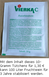 Für 3 Jahre Stabilität sind 100 Milligramm VC je Liter Fruchtwein vor der Flaschenabfüllung zuzugeben.